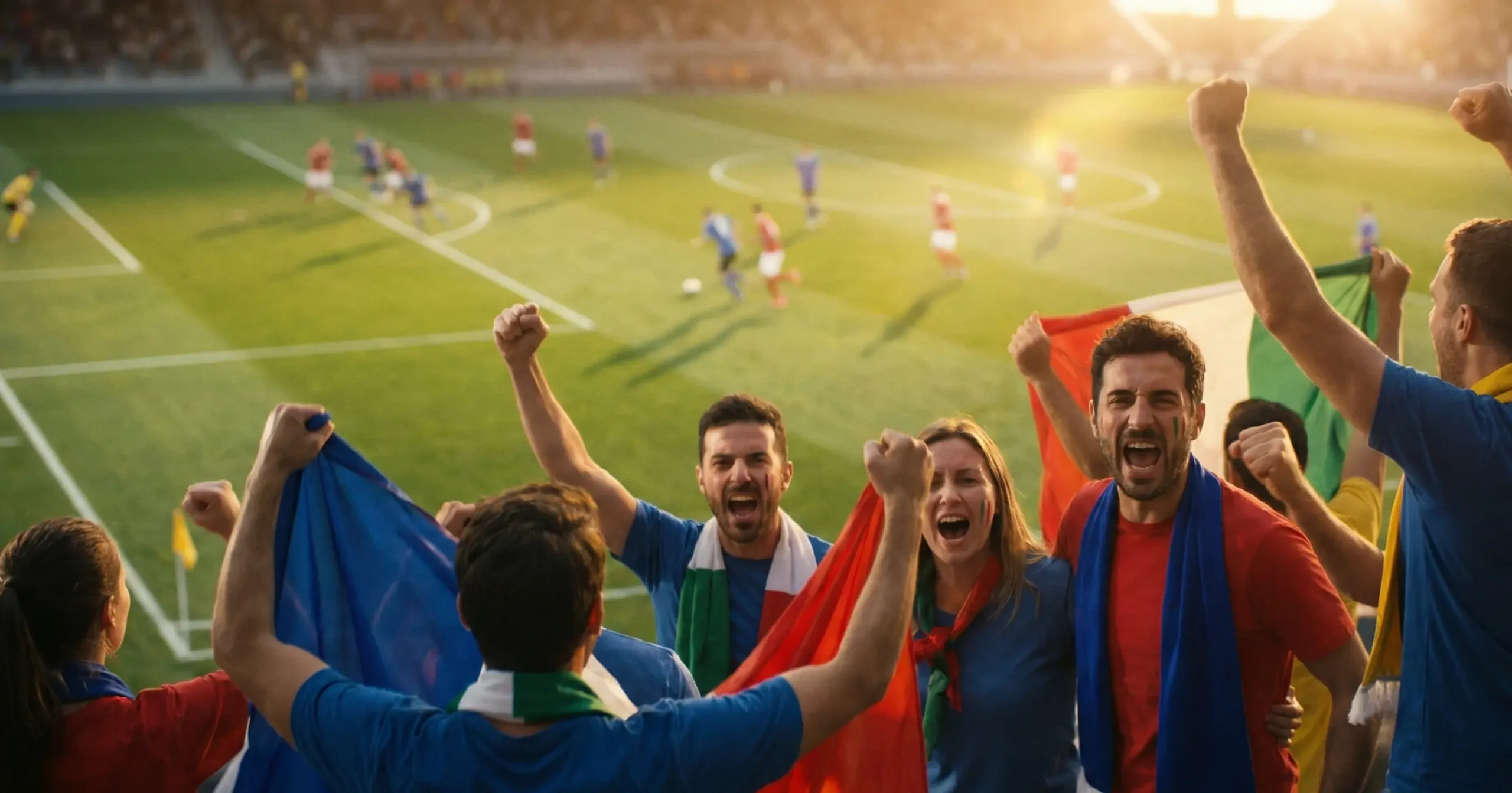 Campo di calcio italiano con giocatori in azione